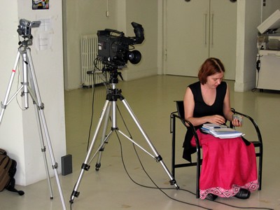 821_8.jpgBlanca Calvo, coordinadora de Mugatxoan, aclaró las dudas de los reporteros portugueses sobre los aspectos organizativos de Mugatxoan.