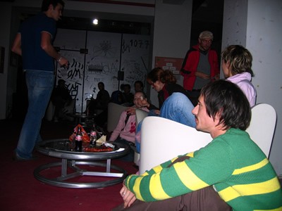 La gente descansando entre los desfiles
